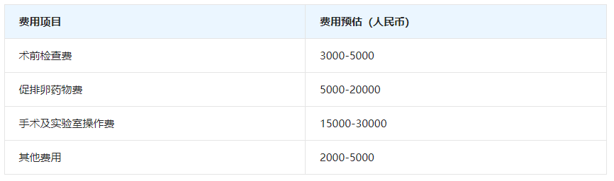 费用预估:手术及实验室操作费用大约在15000元至30000元左右,具体费用会根据选择的试管方案以及是否需要进行胚胎冷冻、胚胎筛查等而有所不同。