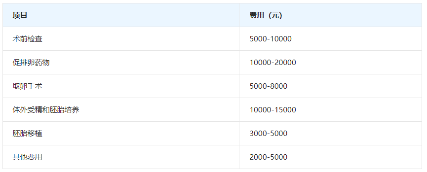 其他费用包括胚胎冷冻费、胚胎管理费、黄体支持药物费用等,大约在2000-5000元左右。