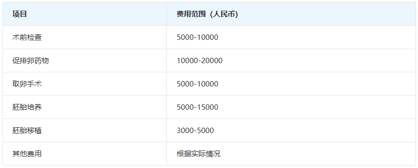 试管婴儿的费用因地区、医院和治疗方案的不同而有所差异。一般来说,一个周期的试管婴儿费用包括以下几个方面: