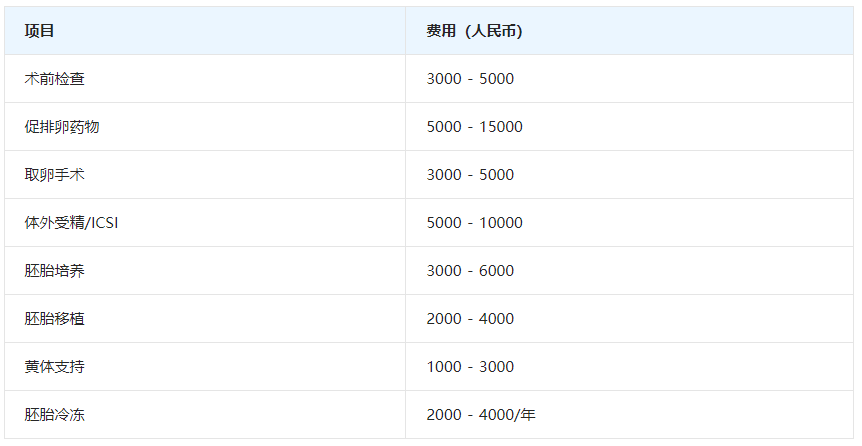 试管婴儿的费用因个体差异和治疗方案的不同而有所差异。在江南大学附属医院,一个周期的试管婴儿费用大致在3万元至6万元人民币之间。这包括术前检查费、促排卵药物费、取卵手术费、体外受精费、胚胎培养费、胚胎移植费以及黄体支持药物费等。如果需要进行单精子显微注射(ICSI)或胚胎植入前遗传学检测(PGT),费用会相应增加。以下是一些可能产生的费用明细: