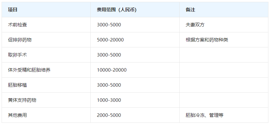 其他费用:如胚胎冷冻费、管理费等,约2000-5000元